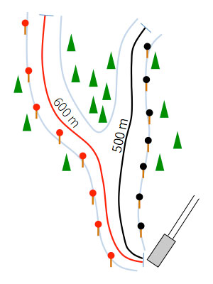 - For the length of the piste, the effective length (inclined) is decisive. The length is to be measured in the middle of the piste.